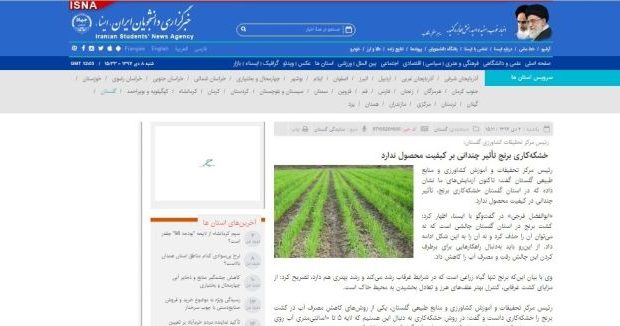 انعکاس خبر مصاحبه رییس مرکز تحقیقات و آموزش گلستان با موضوع خشکه کاری برنج در خبرگزاری ایسنا به مناسبت هفته پژوهش ۹۷