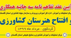 برگزاری آیین عقد تفاهم نامه سه جانبه همکاری و افتتاح هنرستان کشاورزی در واحد آموزشی شهید روحانی فرد کردکوی 26 مرداد 1399 آیین عقد تفاهم نامه سه جانبه همکاری بین مرکز تحقیقات و آموزش کشاورزی و منابع طبیعی استان گلستان، اداره کل آموزش ... ادامه مطلب »