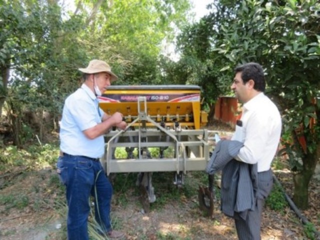 دکتر اسدی در این بازدید راجع به اهداف توسعه این روش نوین کشت به فرماندار گفت: هدف ما بردن دانش و خروجی تحقیقات به میان کشاورزان که ضامن امنیت غذایی ما هستند می باشد تا آنان با بهره گیری از مزایای این شیوه های نوین ضمن پایین آوردن هزینه های تولید محصولات کشاورزی خود موجب کاهش مصرف آب شده و همچنین مدیریت ترافیک را در مزرعه خود اعمال نمایند تا از تراکم هر چه بیشتر خاک مزرعه خود خودداری نمایند. کشاورز این مزرعه آقای مهدی بازگیر بوده که امسال بعد از برداشت گندم که به صورت ریز بد کاشته بود و پنج تن در هکتار برداشت نمود روی بقایای گندم و روی همان بستر ها در تاریخ سوم تیر ماه مبادرت به کشت سویا نمود. کارنده ای که برای این مزرعه بکار گرفته شد دنبال بند سبلان ساخت شرکت ماشین برزگر همدان بوده که در استان گلستان کارآیی خوبی داشته است.