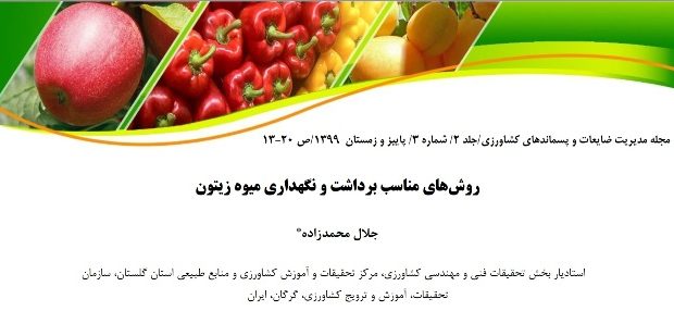 به گزارش روابط عمومی و امور بین الملل مرکز تحقیقات و آموزش کشاورزی و منابع طبیعی استان گلستان، مجله مدیریت ضایعات و پسماندهای کشاورزی /جلد ۲ /شماره ۳، مقاله دکتر جلال محمدزاده استادیار بخش تحقیقات فنی و مهندسی کشاورزی این مرکز را تحت عنوان: روشهای مناسب برداشت و نگهداری میوه زیتون را به چاپ رساند.