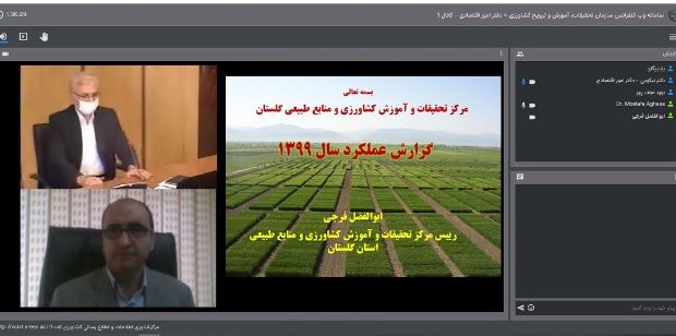 دکتر فرجی رئیس مرکز تحقیقات و آموزش و منابع طبیعی استان گلستان، در نشست مجازی ارزیابی عملکرد سال ۱۳۹۹، که با حضور دکتر بازرگان، معاون وزیر و رئیس سازمان تحقیقات، آموزش و ترویج کشاورزی در تالار جلسه سازمان تات برگزار شد، مهمترین فعالیت ها و دستاوردهای شاخص مرکز با ارایه نمود.