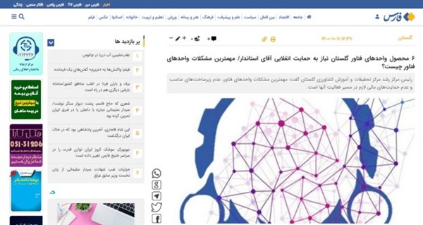 مصاحبه مهندس محمد مهدی لولایی مدیر مرکز رشد واحد های فناور کشاورزی استان گلستان در خبرگزاری فارس انعکاس مناسبی داشت.