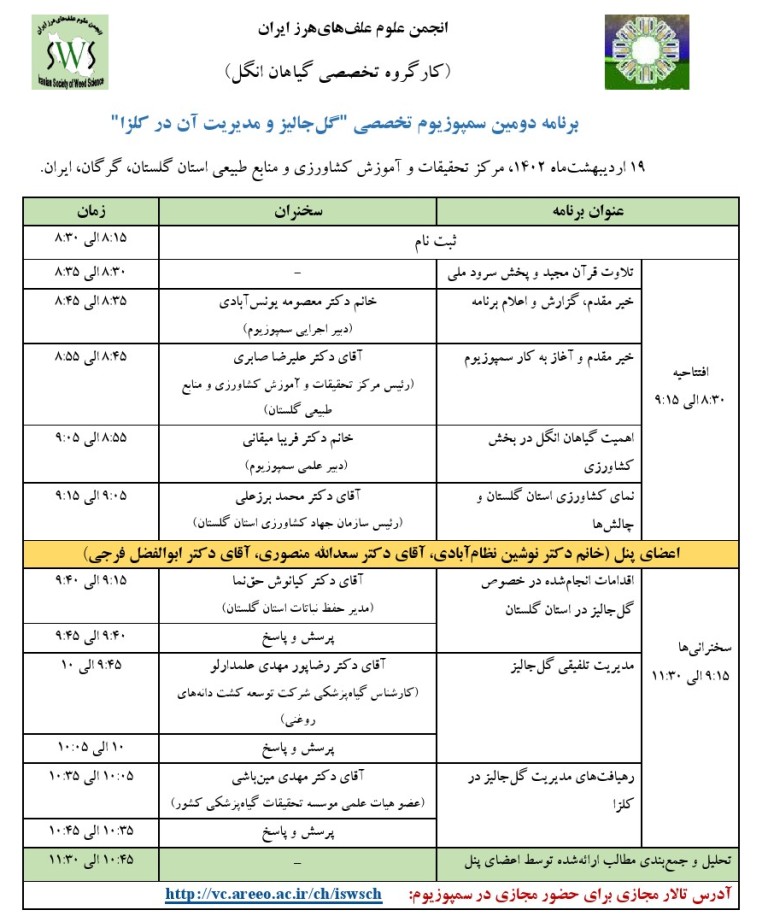 لینک ورود: https://vc.areeo.ac.ir/ch/iswsch
