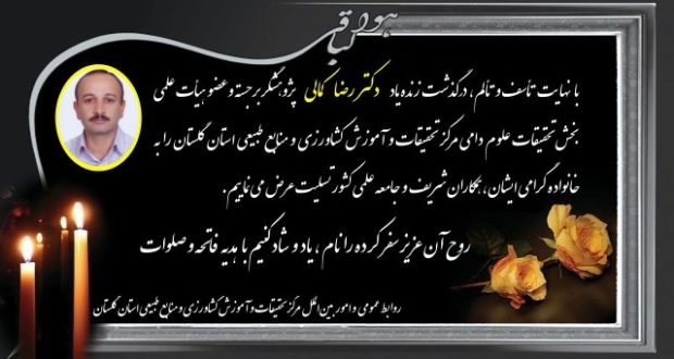 زندهیاد، دکتر رضا کمالی، پژوهشگر برجسته و عضو هیات علمی بخش تحقیقات علوم دامی مرکز تحقیقات و آموزش کشاورزی و منابع طبیعی استان گلستان دعوت حق را لبیک گفت.