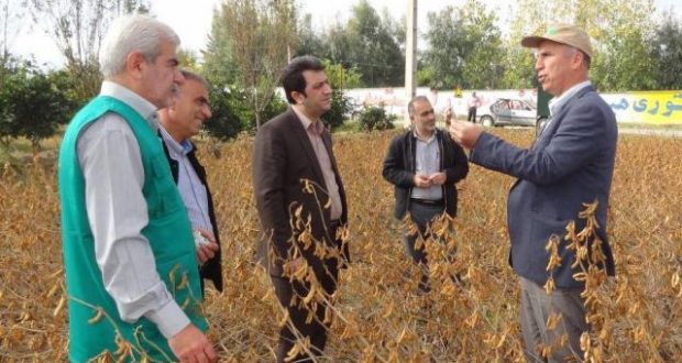 این مزرعه که به مساحت دو هکتار و نیم و در روستای چهارده واقع شده است درست یک روز بعد از برداشت گندم که در روز ۱۷ خرداد صورت گرفت یعنی در ۱۸ خرداد بدون آتش زدن بقایای گندم و با حفظ بقایا مبادرت به کشت سویای رقم دی پی ایکس گردید که نمونه این مزرعه کاملا بارور را امروز ملاحظه میکنید. آقای دکتر اسدی اضافه نمود که این مزرعه طی تابستان به هیچوجه ابیاری نشده و با همیان میزان رطوبت ناشی از بارندگیهای تابستانه رشد نموده است که تاثیر بقایای گیاهی گندم برجای مانده بعد از برداشت در حفظ رطوبت بسیار مهم بوده است. این مزرعه طی همین هفته برداشت می شود و پیش بینی حداقل سه تن دانه سویا در هکتار از آن می گردد. این مزرعه متعلق به کشاورز بوده و کشاورز مزرعه ضمن رضایت از بکار گیری شیوه کشاورزی حفاظتی مایل به کشت گندم بعد از برداشت سویا در ماه آذر به طریقه حفاظتی می باشد. بعد از توضیحات مبسوط دکتر اسدی، آقای مهندس احمدی معاون فرماندار ضمن تمجید و تقدید از تلاش های آقای دکتر اسدی در عرصه حفظ منابع پایه یعنی آب و خاک اظهار داشت که ما باید تلاش بنماییم تا شیوه کشاورزی حفاظتی به صورت گسترده در بین کشاورزان منطقه رایج گردد تا دیگر شاهد از بین رفتن خاک و همچنین آلودگیهای محیط زیست ناشی از سوزاندن بقایای گیاهی بعد از برداشت نگردیم.