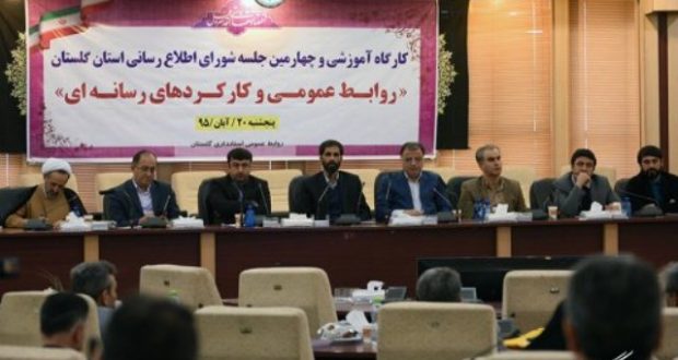 کارگاه آموزشی و چهارمین جلسه شورای اطلاع رسانی استان گلستان با موضوع «روابط عمومی و کارکردهای رسانه» برگزار شد و در آن مسئولان و سخنرانان روابط عمومی ها را بازوان توانمند و محور توسعه دستگاه های اجرایی دانستند.