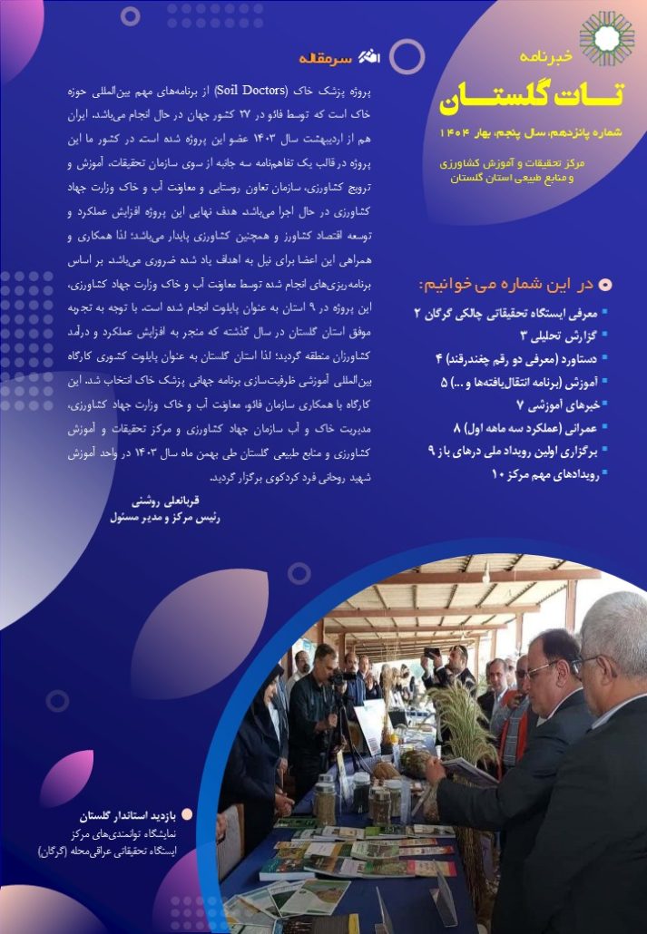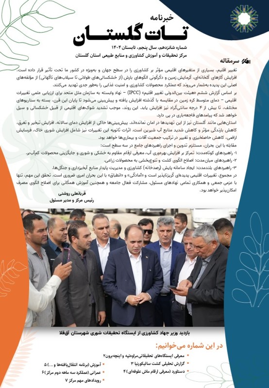 | ۱- معرفی بخش تحقیقات فنی و مهندسی کشاورزی گلستان |